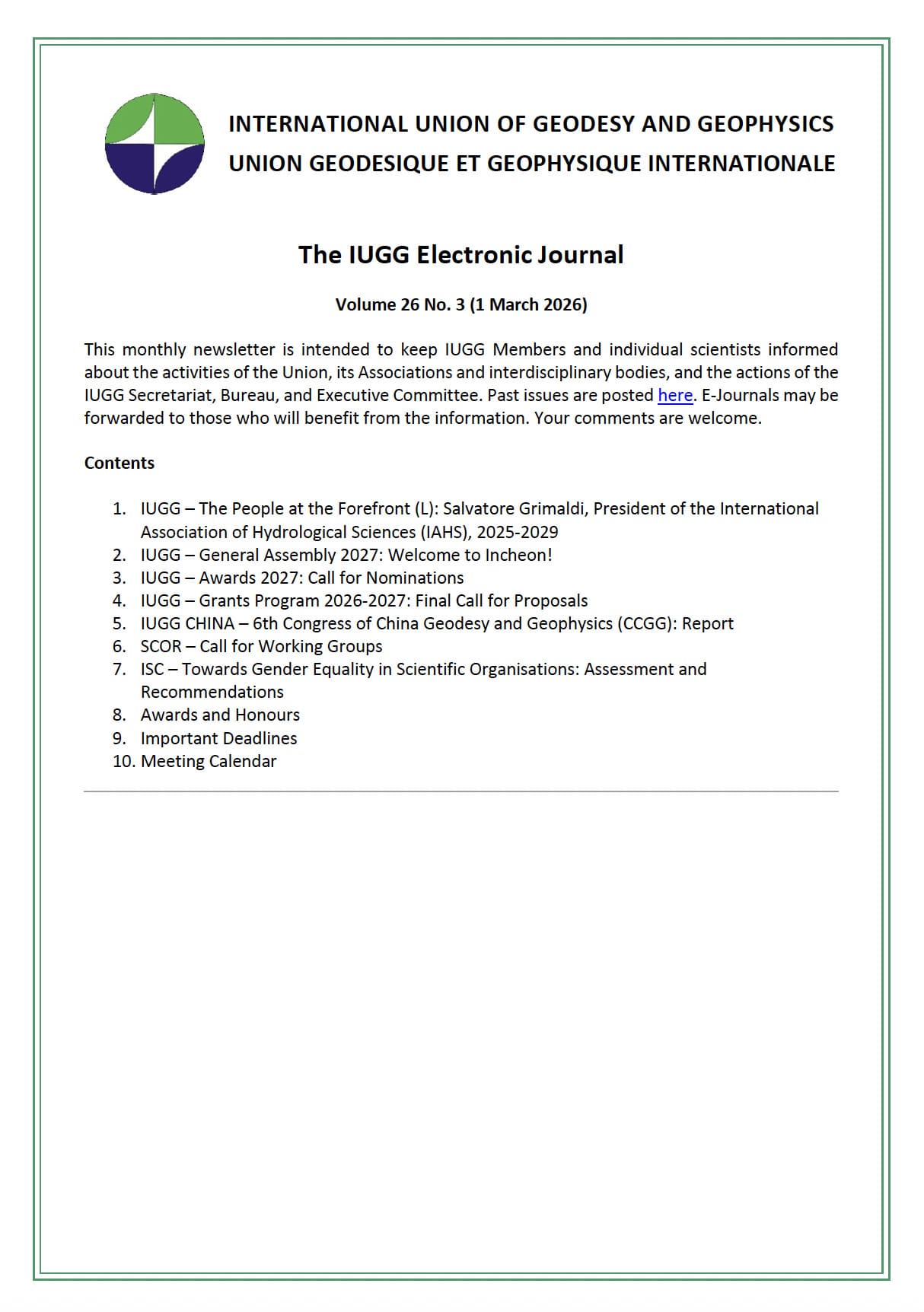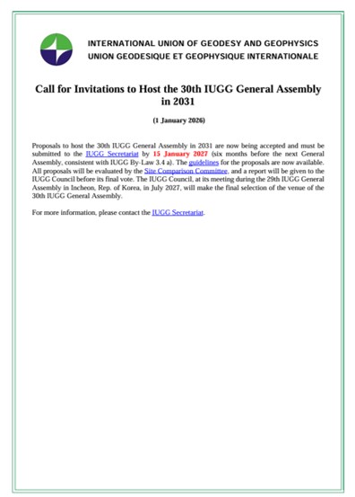 - 1-7, IAG, Gävle, Sweden, GGOS Days 2026 + GGOS Topical Meeting on Geohazards