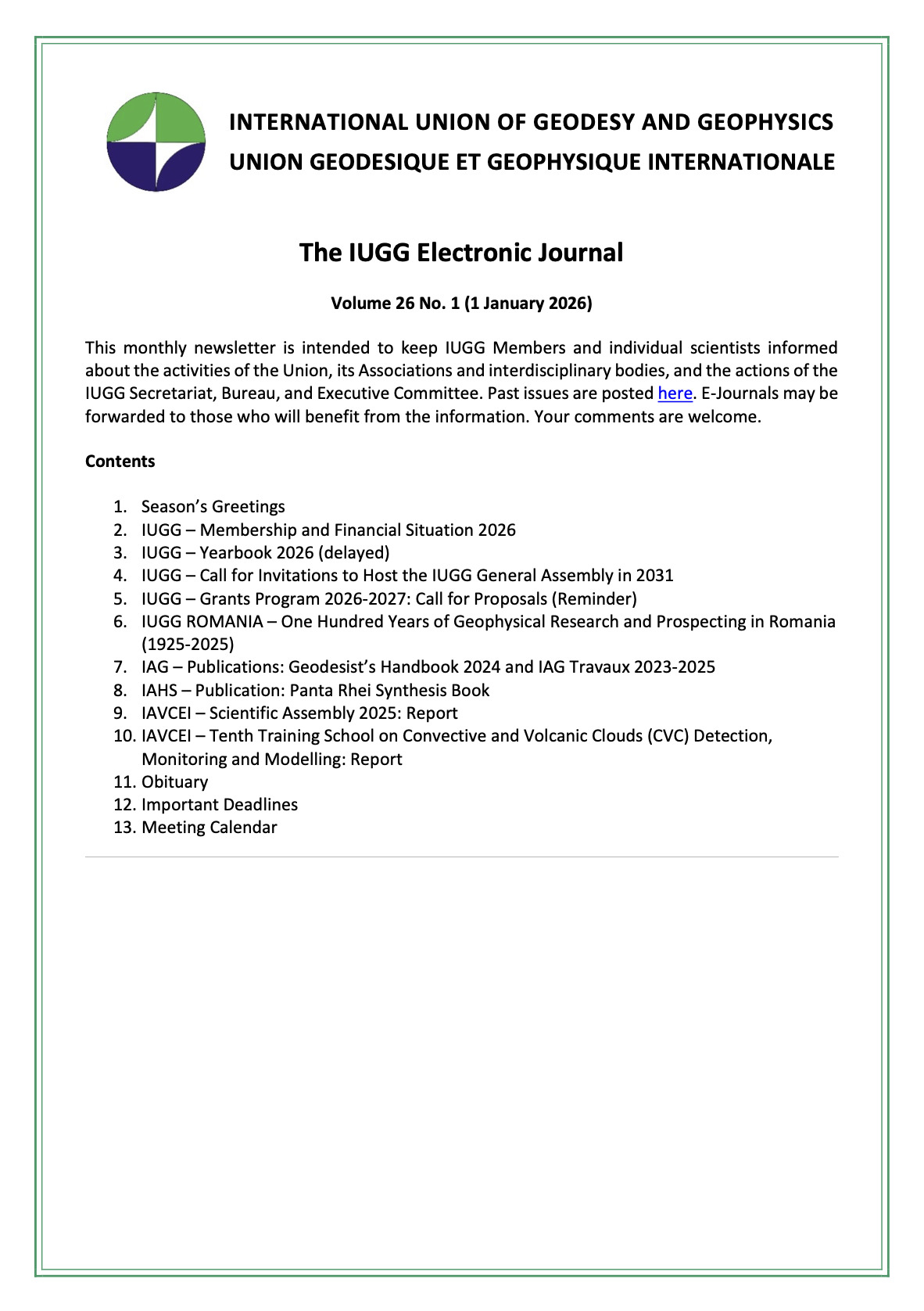 - 29 – 3 July, IAG, IUGG, Douala, Cameroon, Geodesy for a Resilient Africa: Empowering Solutions for Floods, Droughts, Sea-Level Rise, Water Scarcity, and Fisheries Sustainability